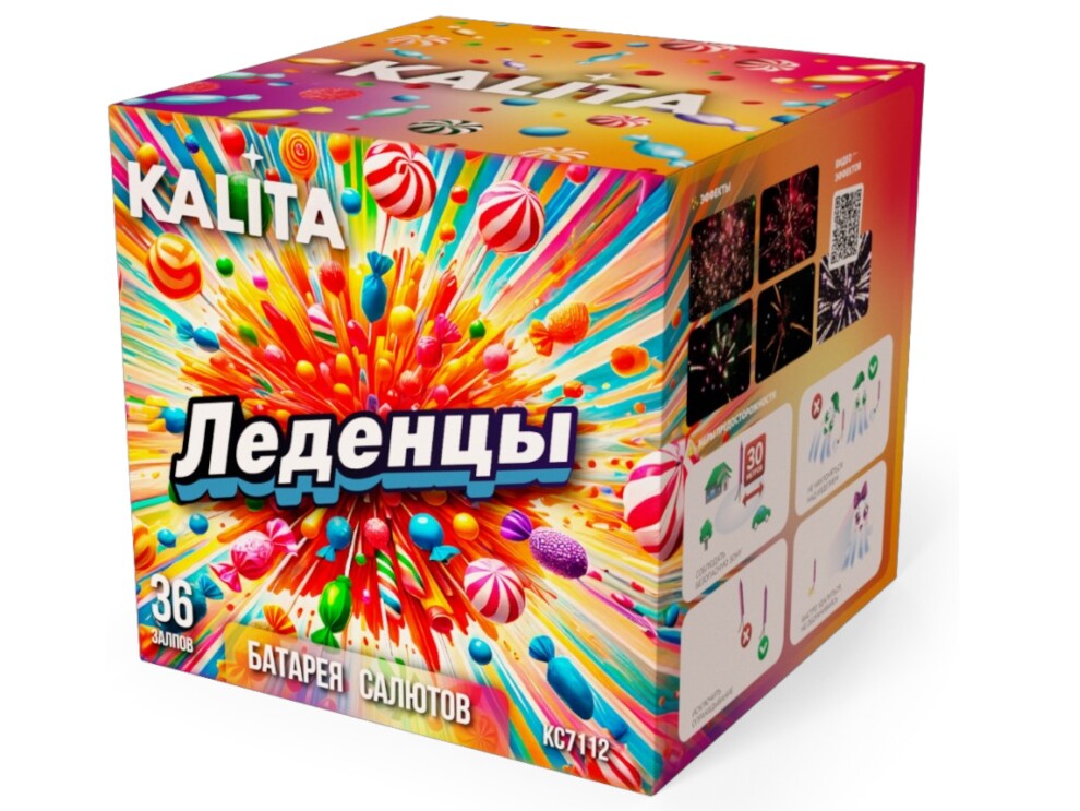Салют отстреливает 36 зарядов калибра 1,0 дюйм 5-ю разнообразными очень красочными эффектами до 45 м высотой за 45 сек.