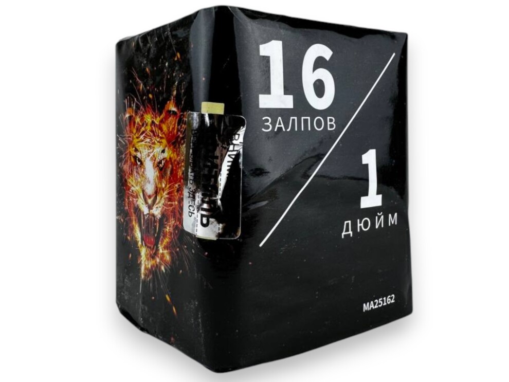 Салют отстреливает 16 зарядов калибра 1,0 дюйм разнообразными красочными эффектами до 45 м высотой за 20-25 сек.