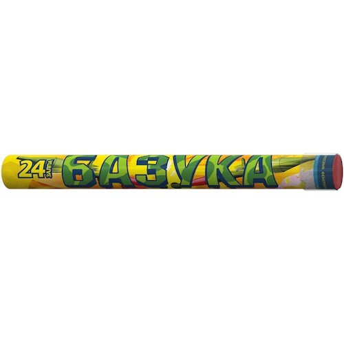 Связка римских свечей с диаметром труб 0,8 дюйма. Стреляет 24 раза на высоту до 25 м. Снаряды поочередно разрываются 12-ю разными красочными эффектами. Размеры: 590х62 мм