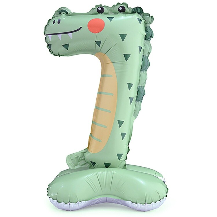 Шар Фольга Цифра "7" Крокодил на подставке 56см 1207-5566