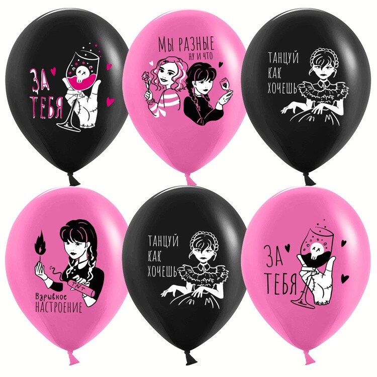 Шар с рисунком Мрачная стори черно/розовые 35см 1103-2897